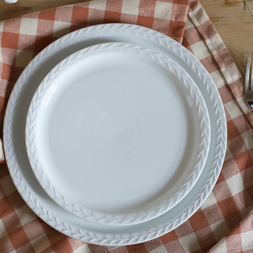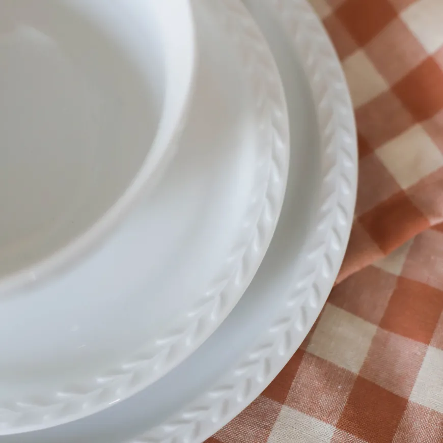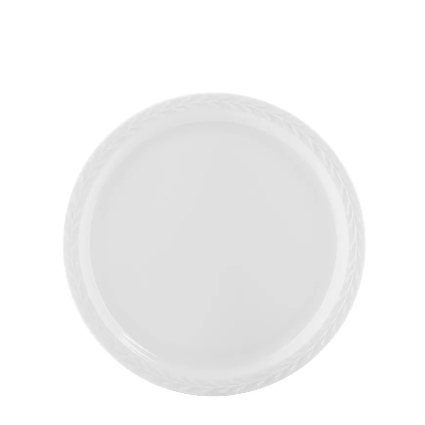 Pors tallerken 21 cm i hvitt er en elegant liten tallerken som kombinerer funksjonalitet og estetikk. Den rene hvite glasuren fremhever de subtile relieffene av porsplanten langs kanten, som gir tallerkenen et sofistikert og tidløst uttrykk. Perfekt til servering av frokost, forrett, småretter eller desserter. Den hvite tallerkenen kan også kombineres med den originale grønne versjonen i PORS-serien for en vakker og variert borddekking, eller kombineres med det hvite serviset.