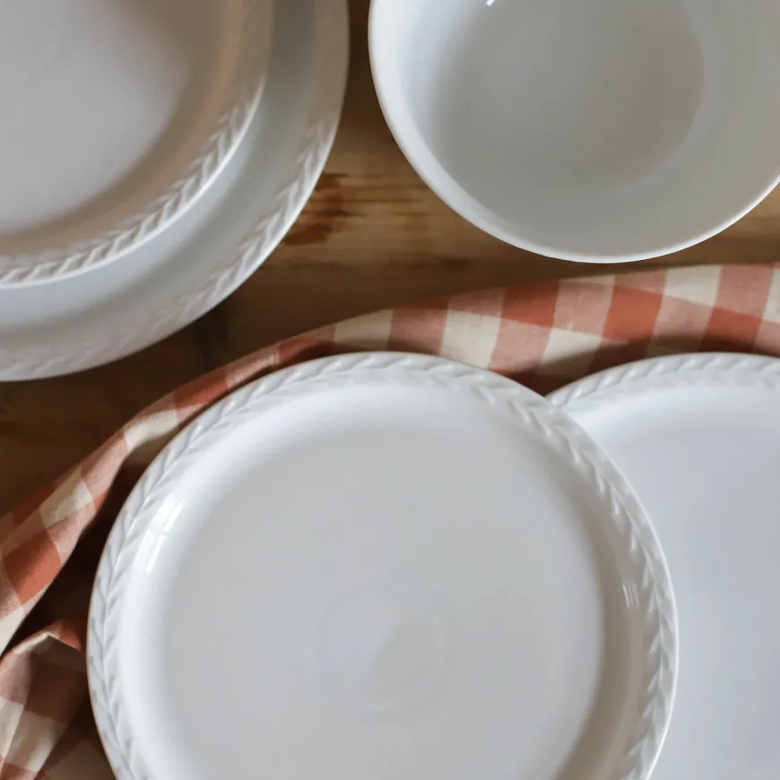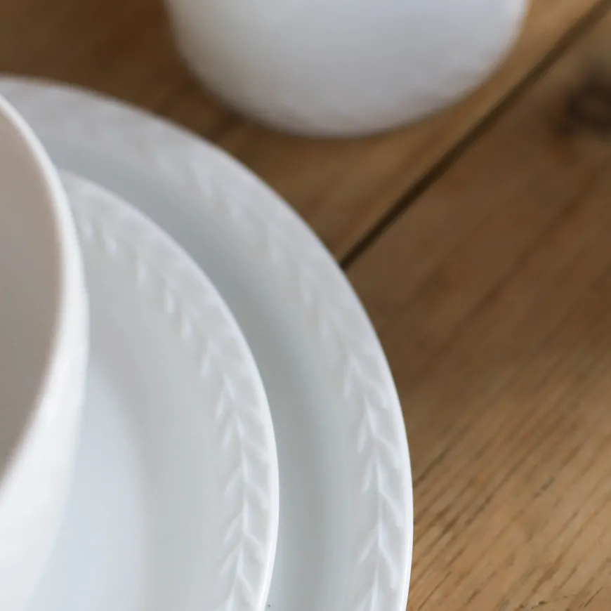 Pors tallerken 26 cm i hvitt er en allsidig middagstallerken som passer perfekt til både hverdag og fest. Den rene hvite glasuren fremhever de delikate relieffene av porsplanten langs kanten, og gir tallerkenen et tidløst og sofistikert uttrykk. Ideell til servering av hovedretter, tallerkenen står vakkert alene, men kan også kombineres med den originale grønne versjonen i PORS-serien for en harmonisk og variert borddekking.