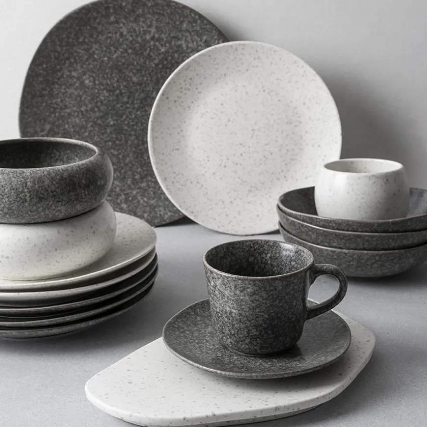 Natur Lys Granitt er inspirert av de lyse, myke tonene i naturlig granitt og gir bordet en harmonisk, nordisk følelse. Serien tilbyr et bredt utvalg av deler, inkludert tallerkener i ulike størrelser og boller i flere varianter, slik at du enkelt kan skape en helhetlig borddekking som passer dine behov. Laget av slitesterkt porselen, tåler serien både bruk og tid.